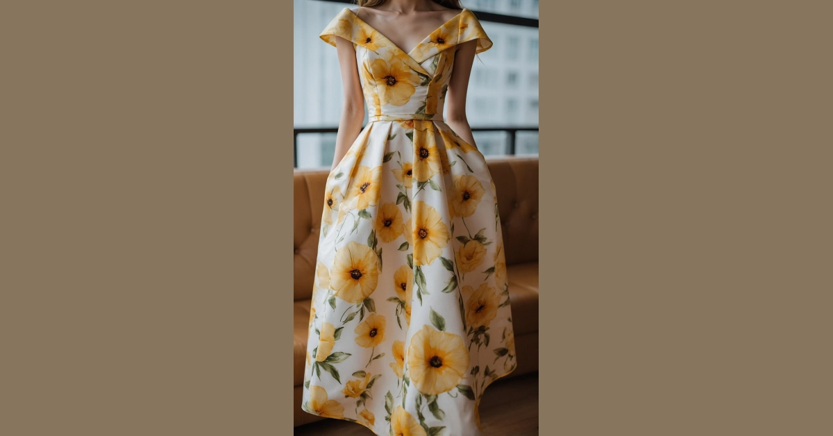 Forget stressing about what to wear to the next big wedding; this dress is like a walking ray of sunshine! With those gorgeous yellow flowers practically blooming off the fabric, you’ll feel totally fresh and ready to celebrate love (and maybe snag some excellent buffet appetizers). The off-the-shoulder design adds a touch of grown-up glam, making you look effortlessly chic without trying too hard. Plus, who doesn’t love a dress that practically screams “happy vibes only” for a special occasion?