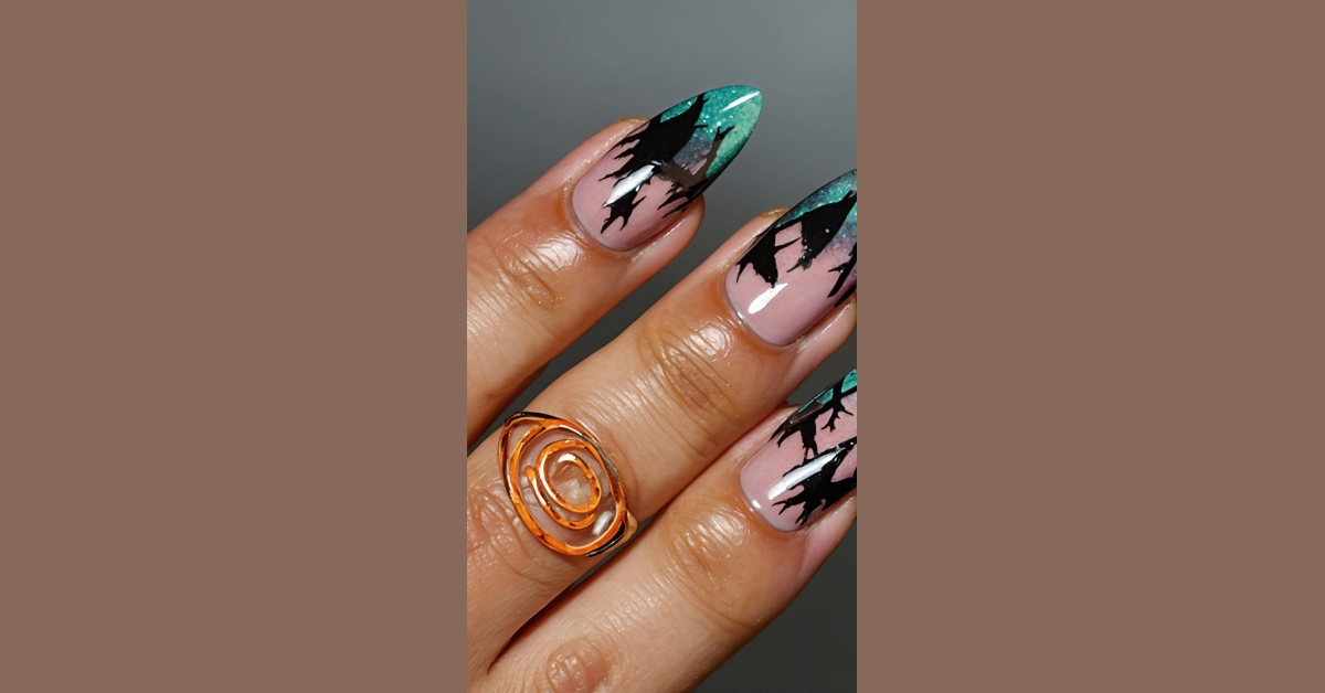 Forget your usual ghost and pumpkin nails, because these ‘halloween nails’ are bringing a whole new level of spooky chic to the party! Just look at those dark, twisted trees reaching up against a shimmery, almost magical twilight sky. It’s like a tiny haunted forest right on your fingertips, ready to help you stir your witch’s brew or just casually wave at trick-or-treaters. These nails are so cool, they might just make your candy corn taste even sweeter, or at least distract everyone from how much you’re actually eating!